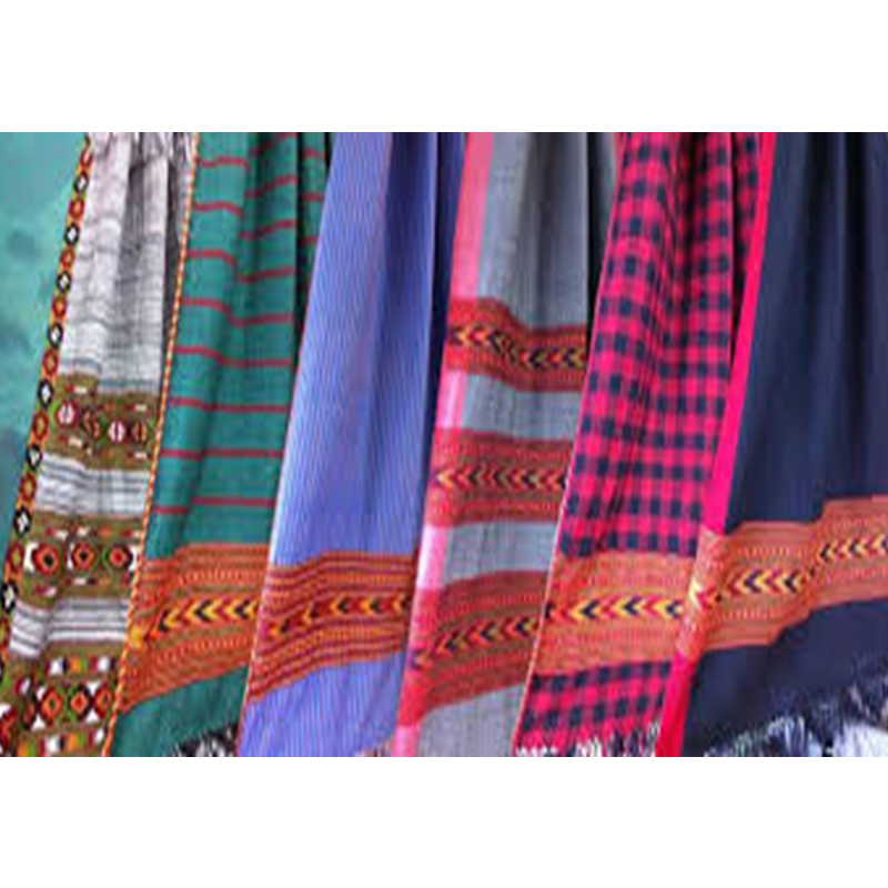 Kullu shawl is woven by tapestry technique of weaving, in which design is created by using different coloured weft yarn of short lengths as per contour of the design. No extra thread is manipulated in its design. It is very time consuming and requires high skill. The design is inspired from the engraving on wall of temples and Buddhist monasteries. The material used for their weaving is pure wool of counts ranging from 2/32 Nm to 2/64 Nm in warp and weft. Bright colours are used generally to give an attractive look. Designs are developed with different coloured weft threads of short length. Kullu shawl is famous for its intricate multi-colour strong geometrical pattern woven with woollen yarns.